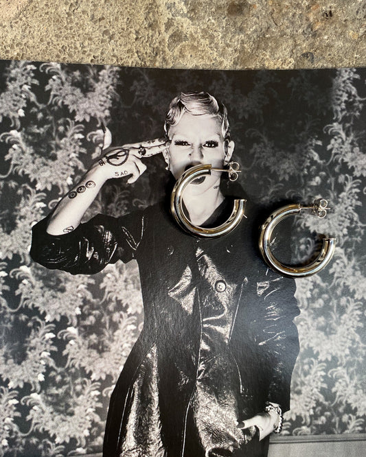 Silver 925 Thick hoop earrings 18mm + 25mm