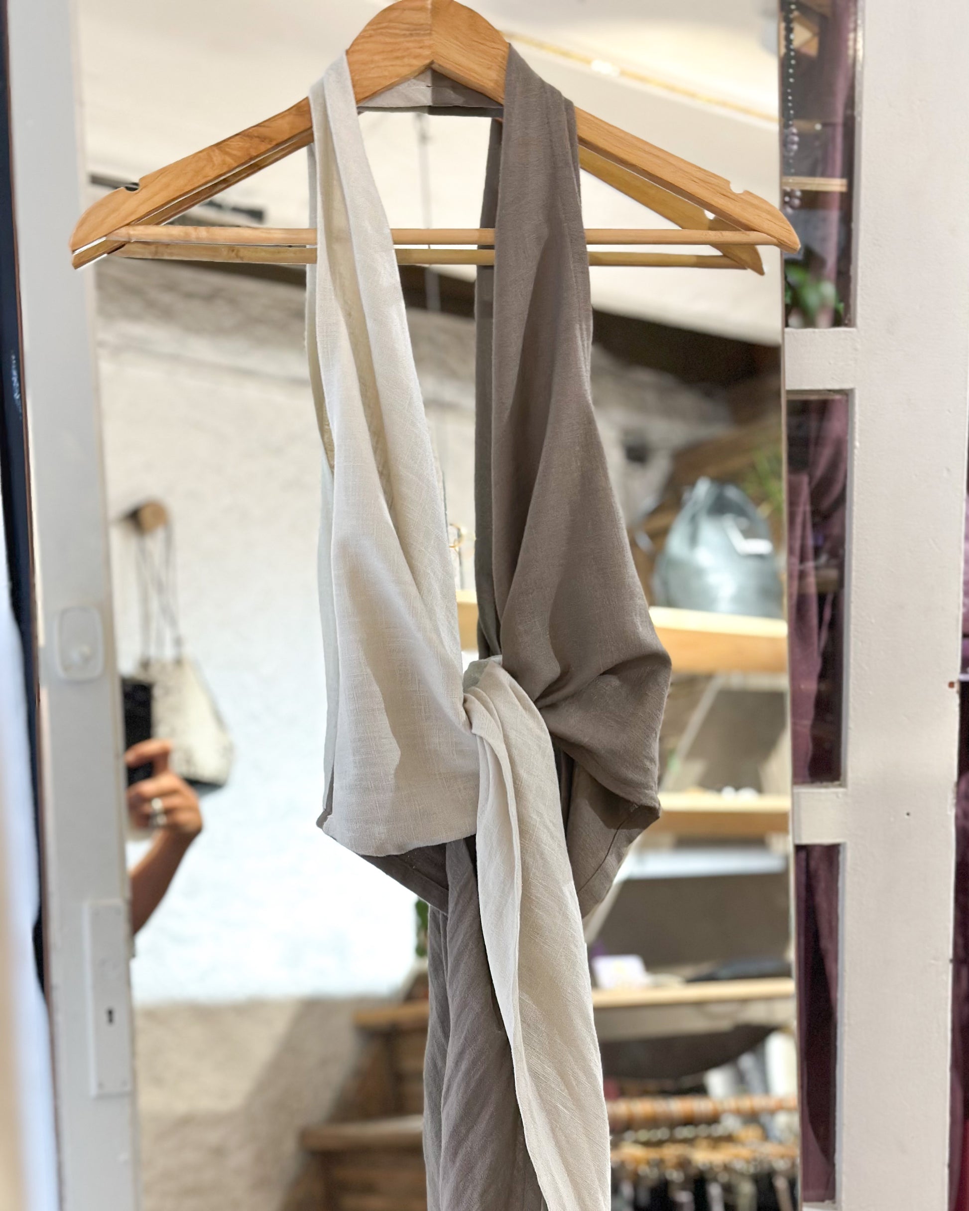 Introducing our 100% linen bicolor multiway top, designed to be worn in three unique styles. Whether it’s spring, summer, fall, or winter, this top is your perfect fit for any season.