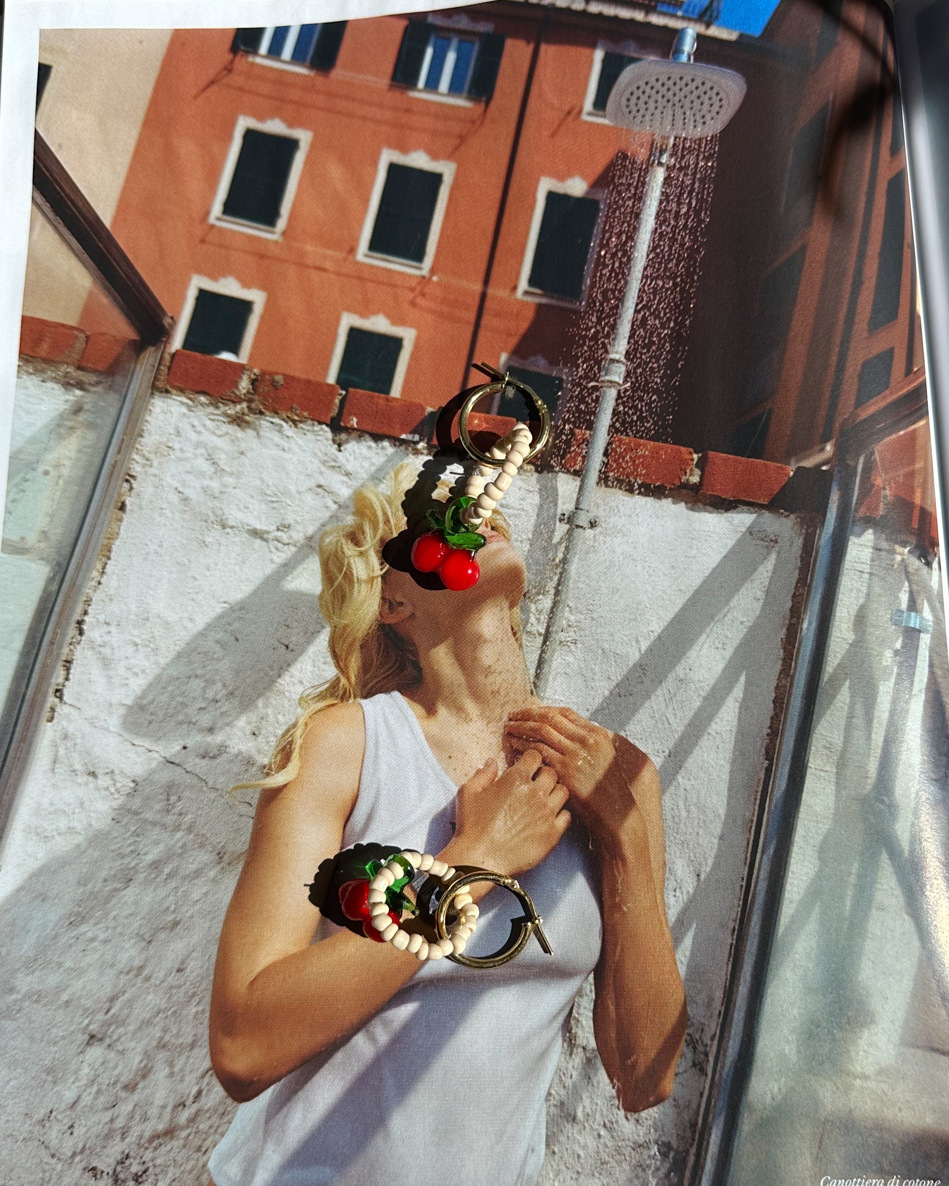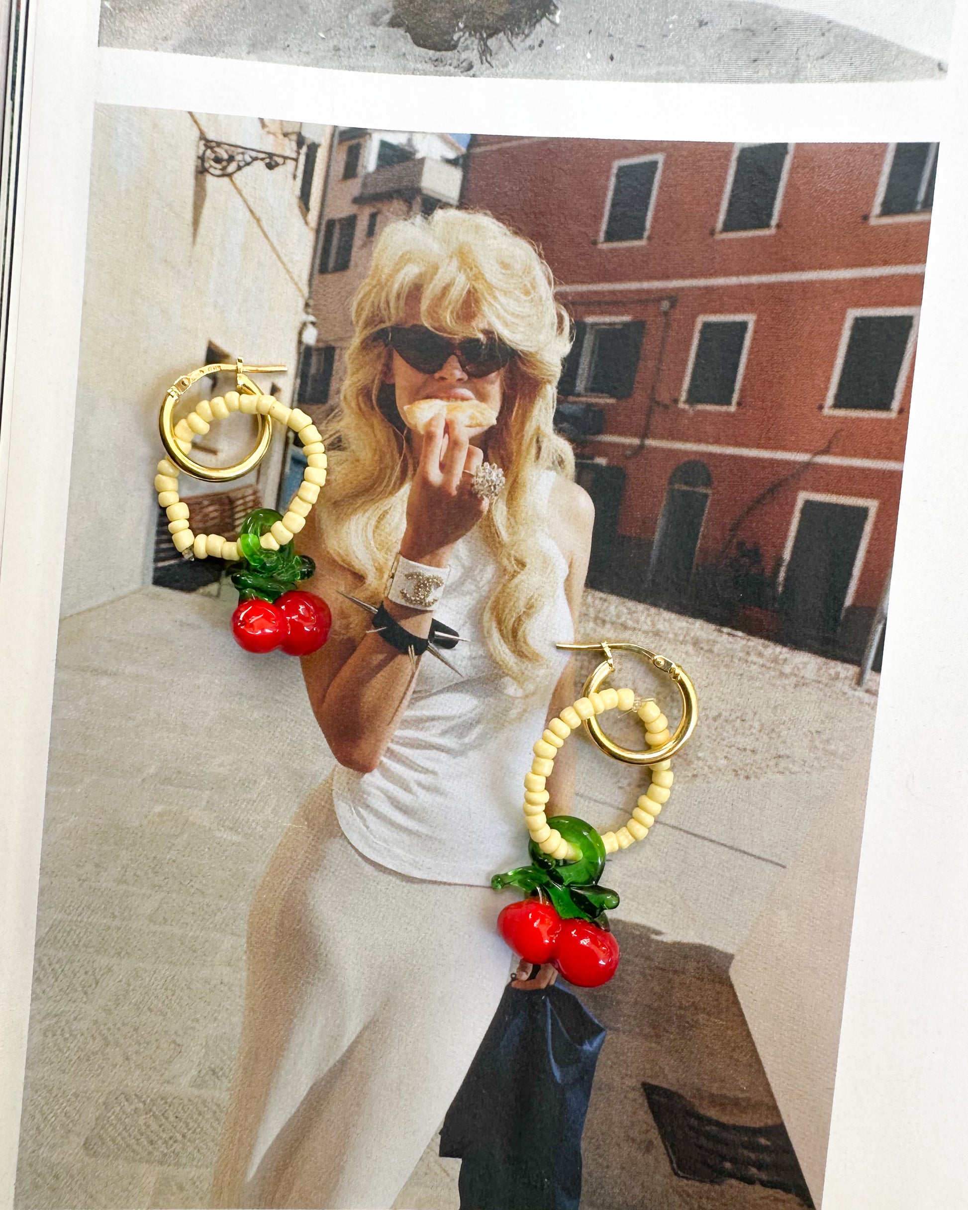 The beads and chili hoops are beaded by us at the Barcelona studio from glass beads and a glass chili, we use a 925 silver hoop (gold plated or not)