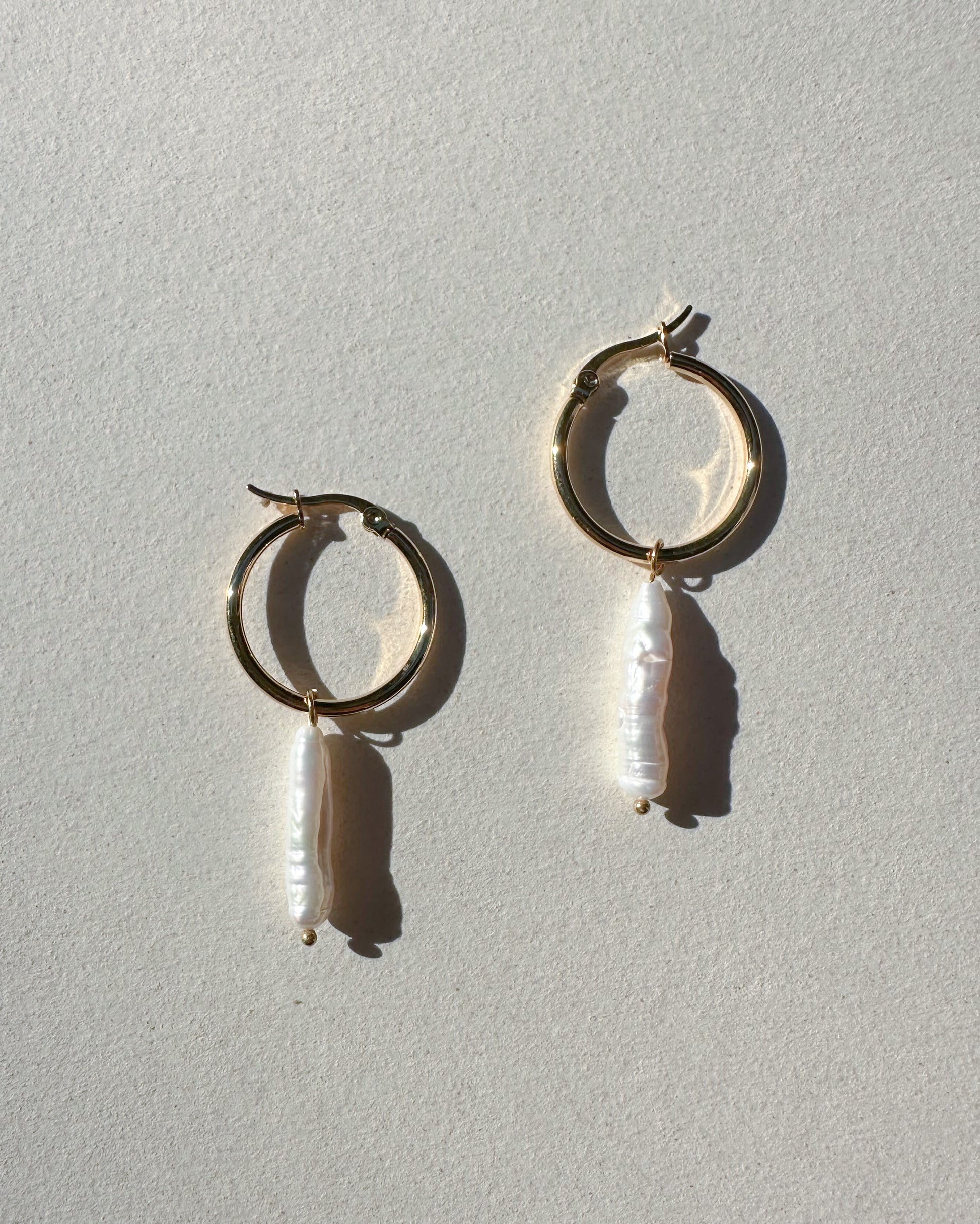 20mm gold-plated stainless steel hoops with a long freshwater pearl.