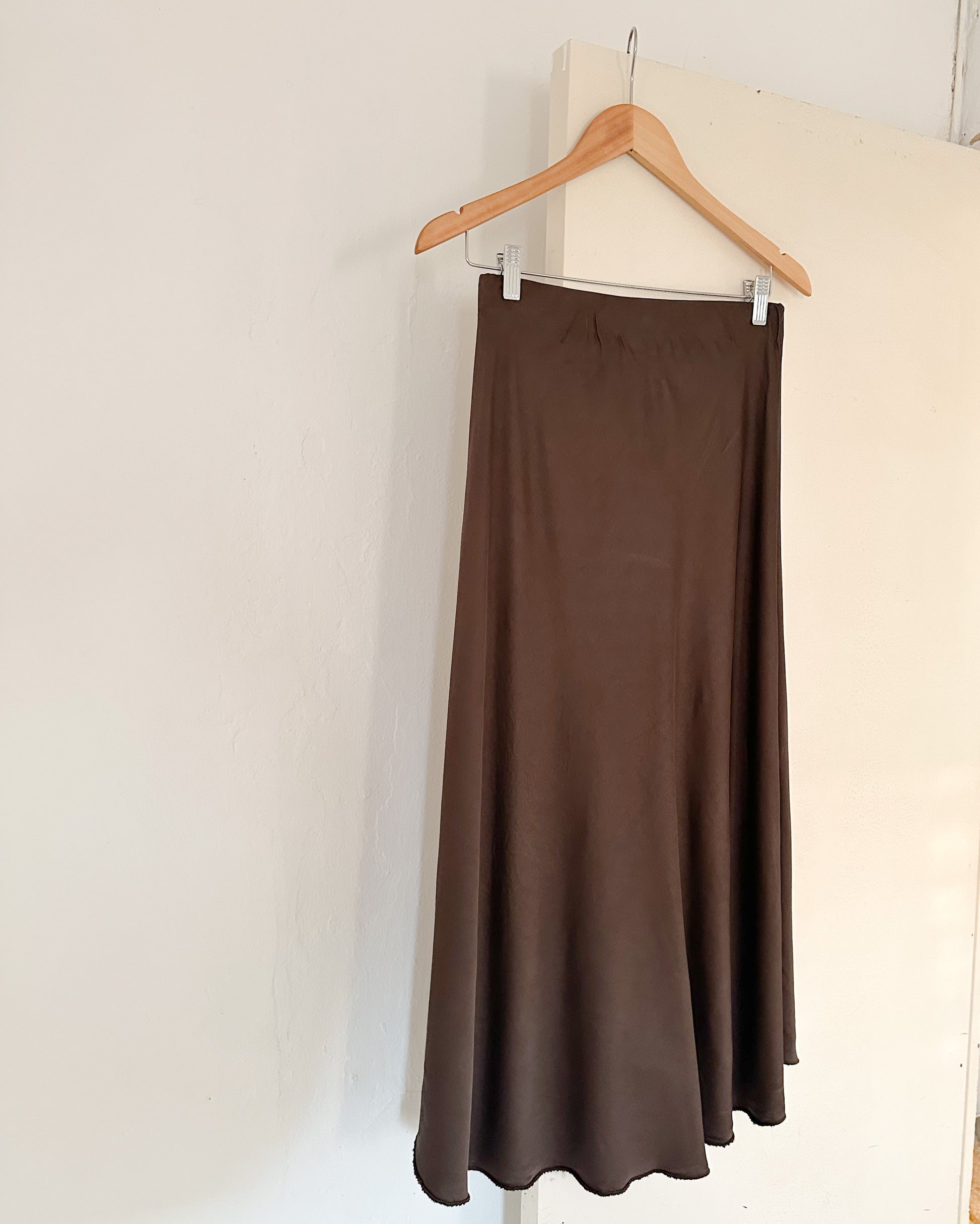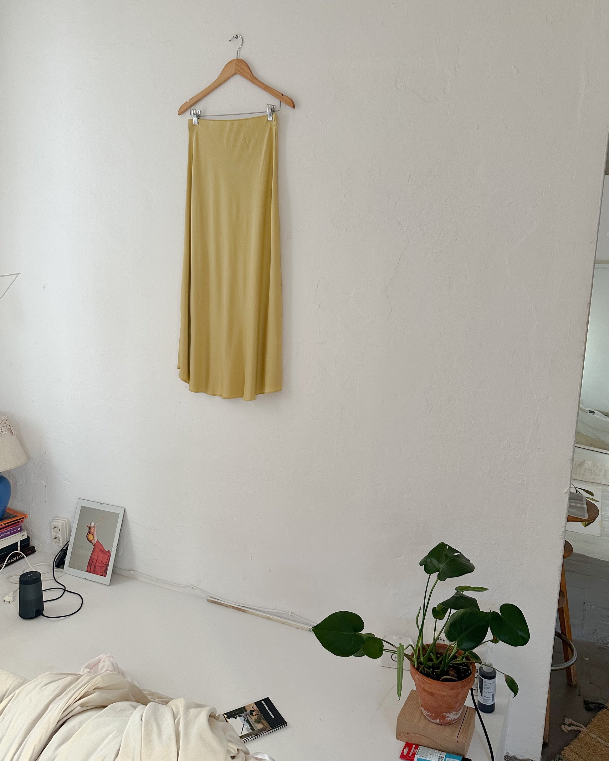A fluid, flattering skirt cut on the bias for the perfect drape. Made from a soft blend of silk and viscose (30/70), it falls beautifully with every movement — light, breathable, and effortlessly chic.
