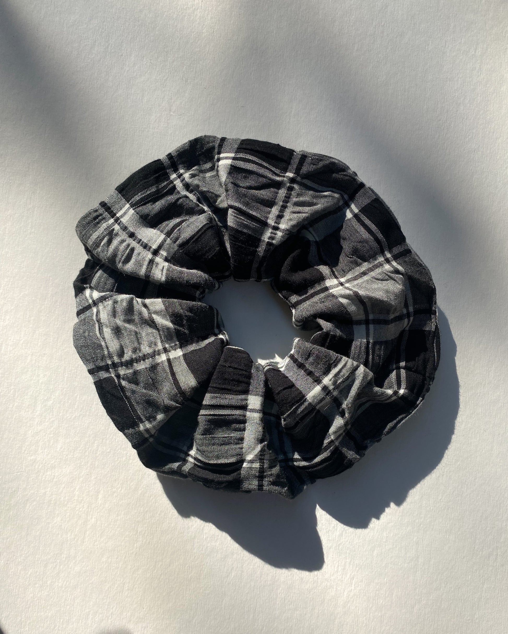 Give your hair a playful twist with our upcycled fabric scrunchies! Made in-house from the leftover materials of our main collection, each scrunchie has its own personality.
